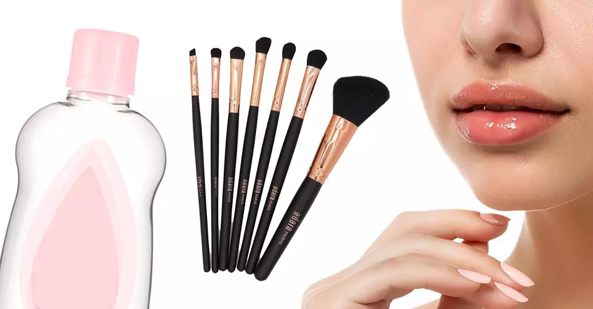 Primero lávalas con agua y jabón. Después, vierte unas gotas de aceite para bebé en cada brocha, así quedarán muy suaves.