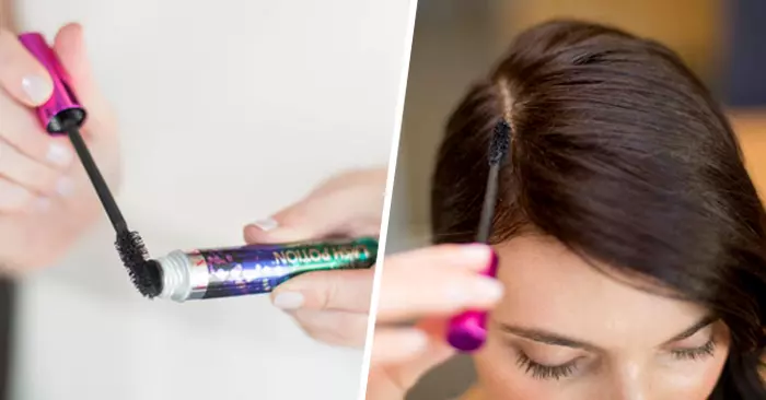 Si no tienes tiempo de ir al salón y tienes la necesidad de cubrir algunos cabellos grises o el crecimiento de la raíz, utiliza una máscara de pestañas del mismo tono que tu cabello. Solo asegúrate de quitar el exceso.