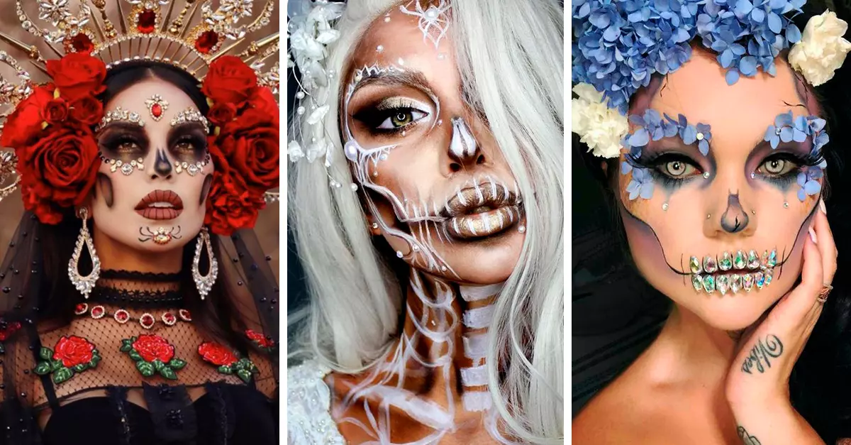 A continuación te compartimos 18 ideas para transformarte en una elegante Catrina. Lo único que necesitas es desempolvar tus brochas y sombras porque estos diseños requerirán un poco de esfuerzo y piedras de fantasía para brillar como la nueva reina de la oscuridad.