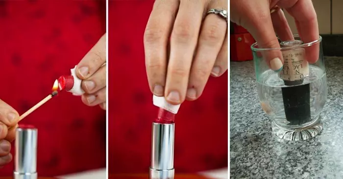 Con un cuchillo retira todo el producto que queda en el tubo de tu lipstick. Coloca todo el producto en una cuchara y caliéntala sobre una vela o un encendedor hasta que se derrita y vierte el labial derretido en un frasco pequeño para que lo vuelvas a usar una vez que vuelva a su estado sólido.