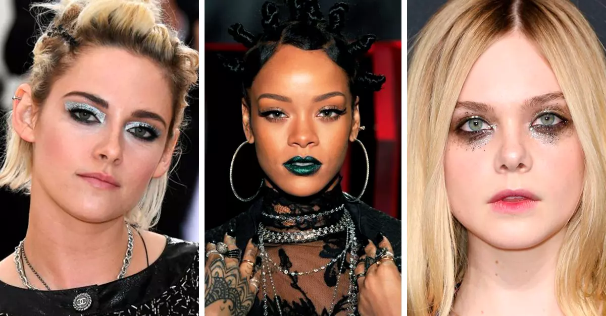Si deseas lucir un maquillaje de fantasía en Halloween, pero no quieres pagar una fortuna para tenerlo, entonces puedes intentar hacer uno eléctrico como el que lució Kristen Stwart en la gala del MET. Ella solo delineó sus ojos en color negro y aplicó una sombra de ojos en color plata con terminaciones cuadradas.