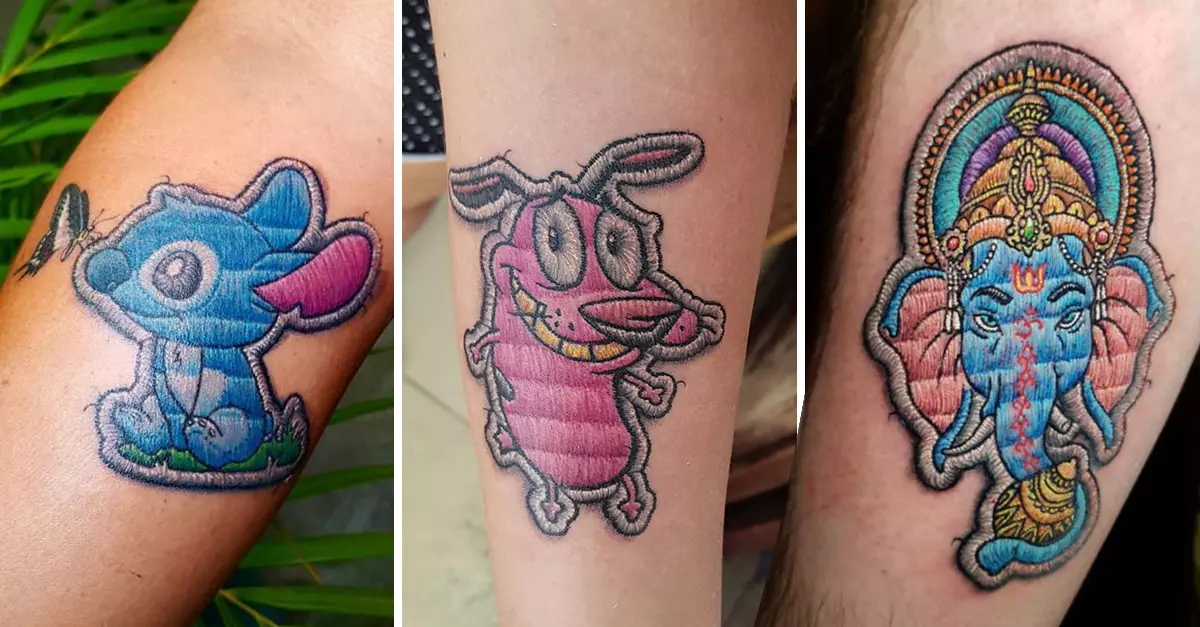 Los tatuajes que este artista crea parecen parches pegados en la piel, tal como los que usábamos en la adolescencia para adornar nuestra ropa o mochila, ¡qué recuerdos! La diferencia es que estos te acompañarán para siempre.