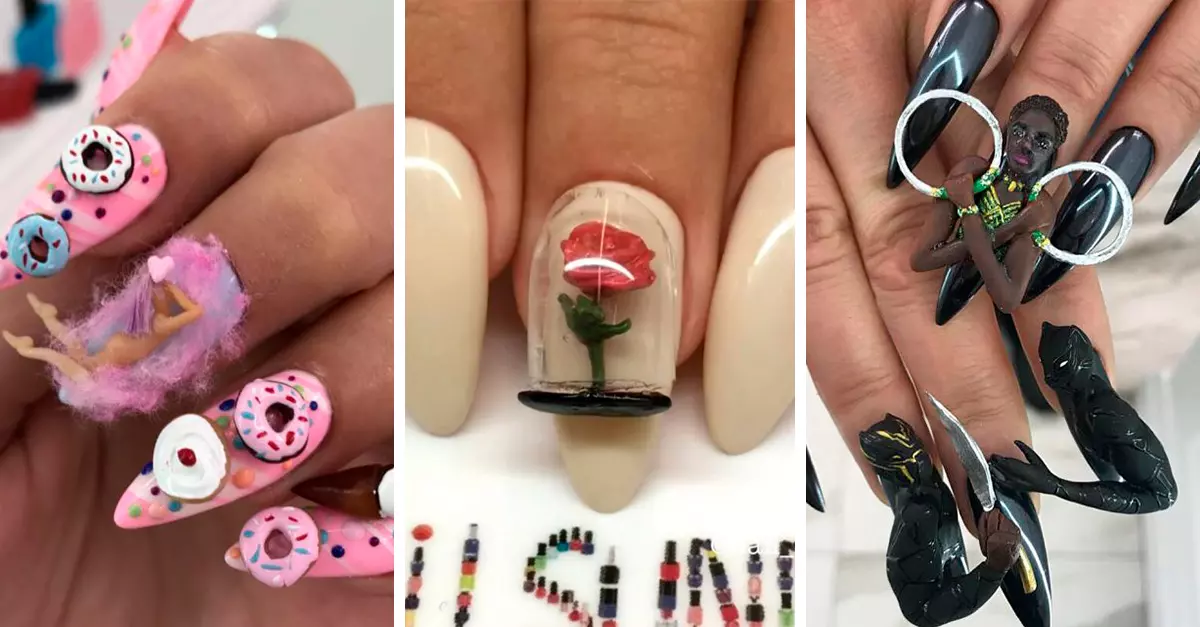Pero si eso todavía suena como algo muy simple, entonces aún no conoces los diseños en 3D, especialmente los creados por Nail Sunny, un salón de belleza que se inspira en la cultura pop para hacer los diseños más alocados, extraños y fuera de este mundo que existen. Entre los más populares se encuentra la rosa de La Bella y La Bestia, la foto con la que Kylie Jenner presentó a su hija Stormi y la estatuilla de los premios Óscar. Estos son 15 diseños de Nail Synny que te harán perder la cabeza.