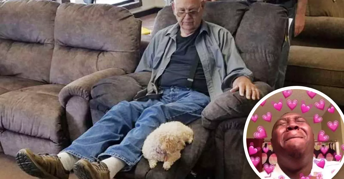 Entonces, de manera adorable, el abuelo llevó a su perrita por varias tiendas de muebles probando sillones para asegurarse de encontrar el ideal.