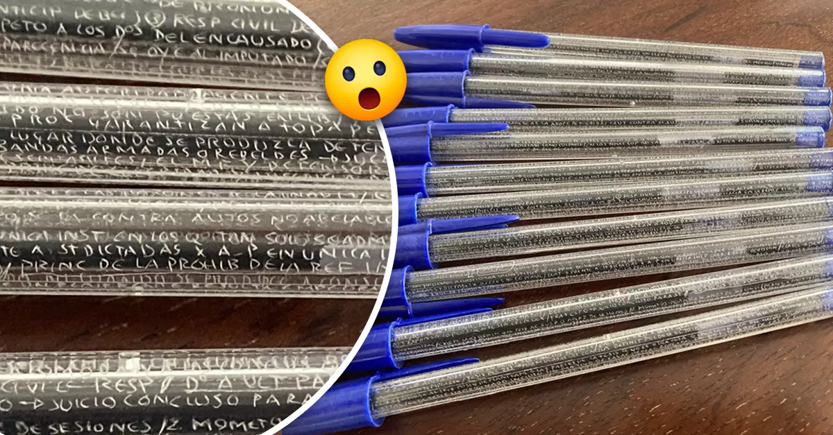 Fue una usuaria de Twitter, identificada como Yolanda De Lucchi (@procesaleando), la encargada de compartir las imágenes de las plumas alteradas. Yolanda, quien es Profesora Titular de Derecho Procesal de la Universidad de Málaga en España, confirscó el preciado tesoro a su alumno.