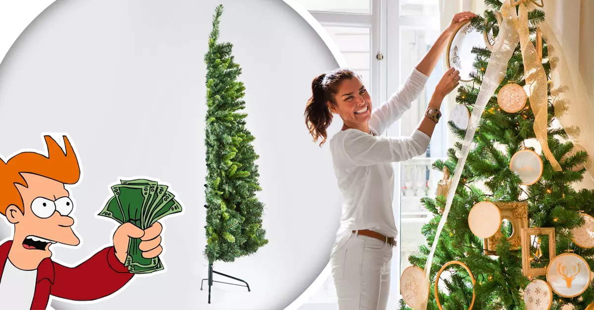 Si eres de las chicas que aman decorar con el mínimo esfuerzo, te encantará este invento: un árbol de Navidad a la mitad para no desgastarte decorando la parte trasera, porque… pues nadie la ve, ¿o sí?