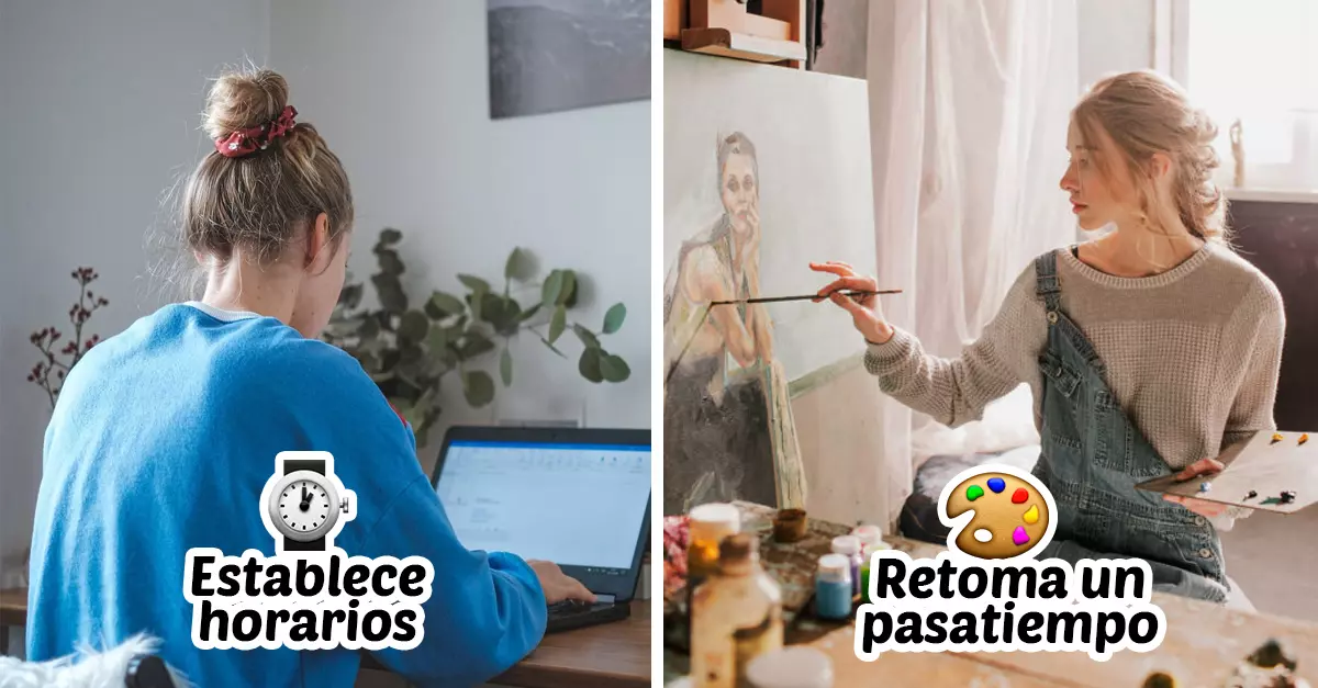 Cuando vives y trabajas en el mismo espacio es importante para tu salud emocional pausar tus labores y no saturarte ni sentirte invadida. Si te sientes exhausta tómate 10 minutos para simplemente cerrar los ojos y reiniciar tu mente.