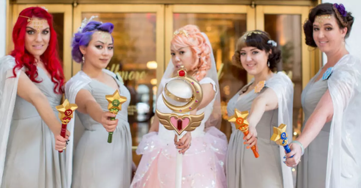Los novios unieron sus vidas en una ceremonia inspirada en Sailor Moon, la cual incluyó: peinados coloridos, pastel cubierto de estrellas y un lindo vestido que Michelle bordó; además, cambió el típico ramo de flores por un increíble y poderoso cetro lunar.