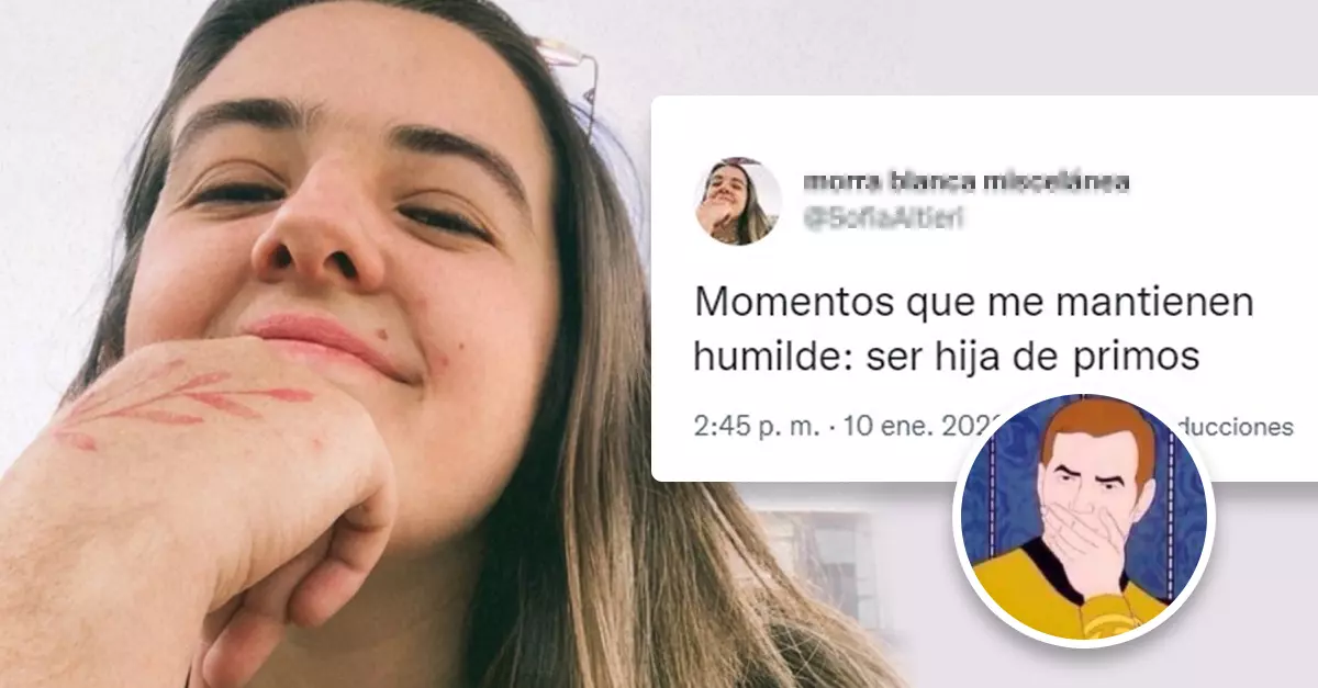 Muestra de ello es la historia de Sofía Altieri, una joven originaria de Puebla, México, que generó curiosidad y enloqueció a muchos usuarios de Twitter tras confesar en una publicación que sus papás son primos y que ese es uno de los “momentos” que la mantiene humilde.