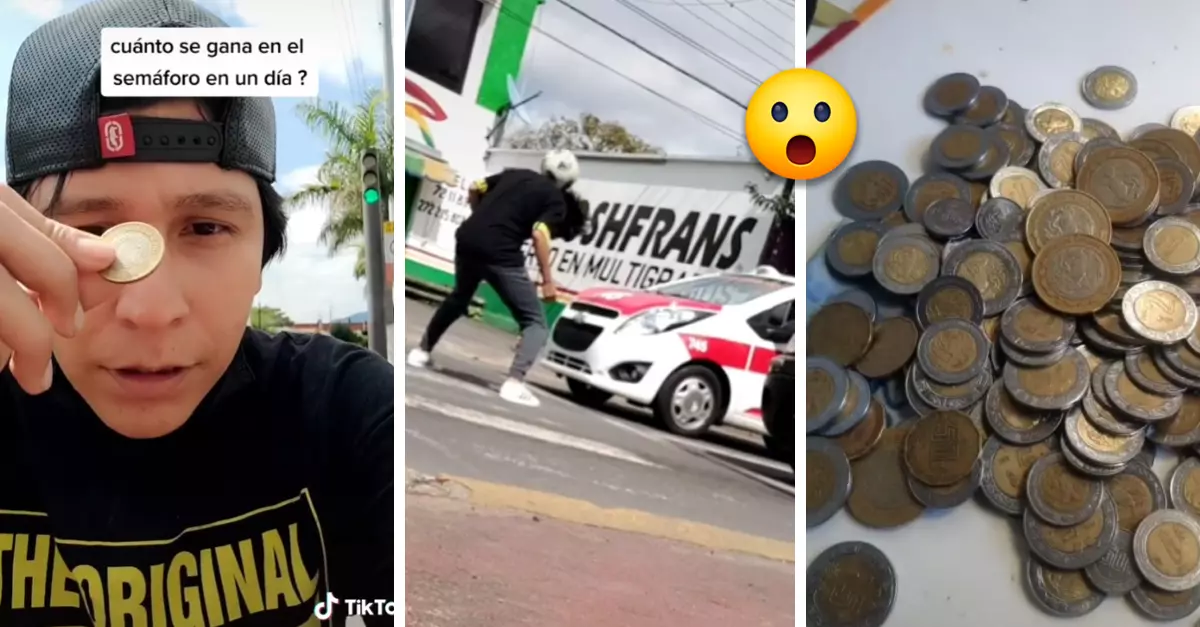 El usuario de TikTok @alexstylers, conocido como Alex Rivera, decidió compartir cuánto dinero se puede ganar un domingo haciendo dominadas con su balón de futbol cuando el semáforo se pone en rojo.