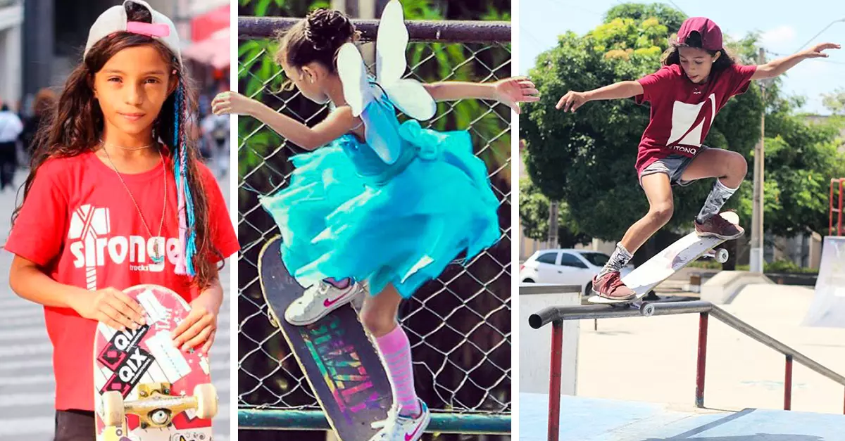Brasil es el país donde su gente pocas veces puede mantener los pies en la tierra. El fútbol, la samba y la capoeira son ejemplos claros de que el brasileño ama el movimiento. Otra actividad física que también requiere bastante acción y agilidad con los pies es el skateboarding y la representante más joven de este deporte en Brasil resulta ser una niña de tan solo nueve años.