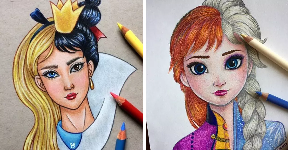 Disney es una fuente inagotable de inspiración para los ilustradores, como en el caso de la usuaria de Instagram, Dada16808, quien ha combinado princesas, héroes, villanos y cómplices de películas animadas.