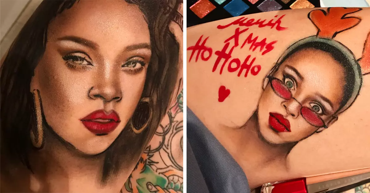 De inmediato las amantes de la belleza comenzaron a usar y hacer comentarios positivos sobre el maquillaje Fenty. Pero la artista Alena Wedderburn los conmemoró de una manera muy diferente: usando toda la línea de maquillaje, la artista del tatuaje dibujó rostros de Rihanna en sus brazos y piernas, y el resultado es grandioso. Tienes que verlo.