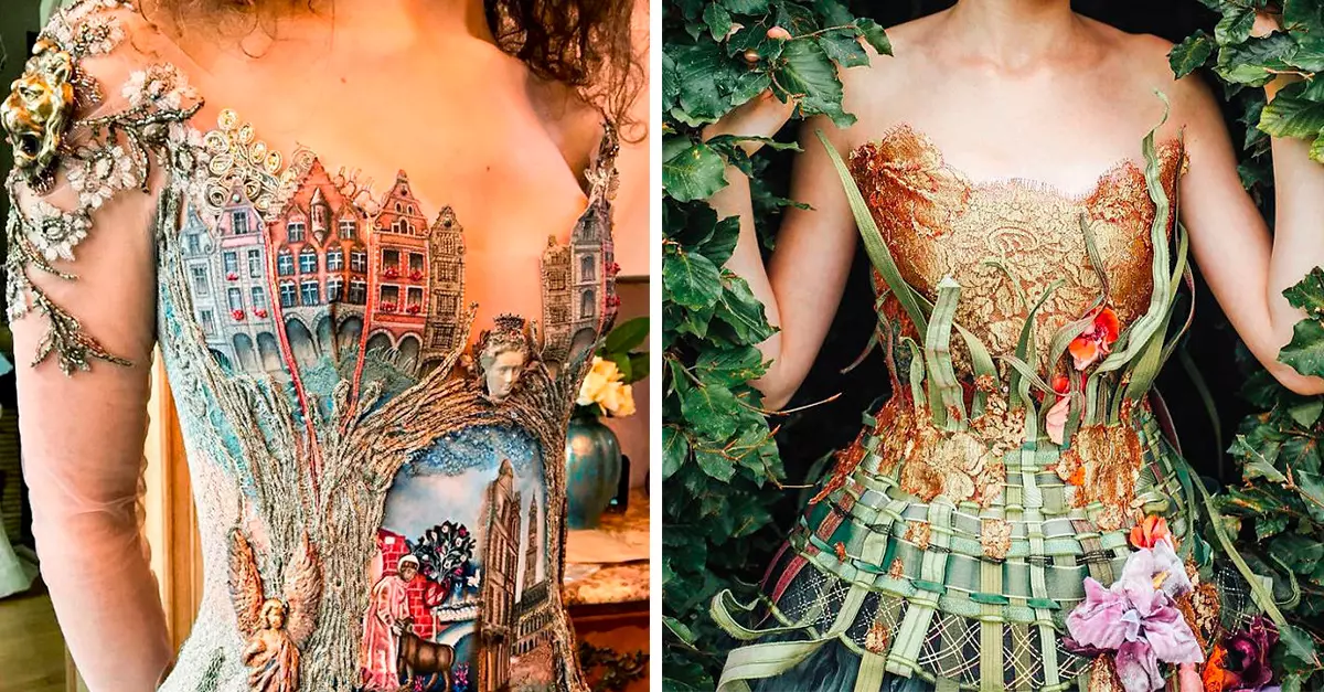 Facon es tan creativa que incluso diseñó un vestido con el lomo de libros antiguos. Para crear el vestido trabajó en conjunto con la diseñadora de vestuario Morgane E. Grosdemange, y al final la prenda con inspiración steampnk resaltó la increíble versatilidad de las habilidades de Facon. Estos son los vestidos de la diseñadora francesa que crea como nadie más.