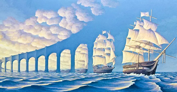 El interés de Gonsalves comenzó a una edad temprana, y a los 12 años tenía experiencia con la técnica, la perspectiva y el arte arquitectónico. Cuando encontró a Salvador Dalí y René Magritte, estos pintores surrealistas claramente dejaron un impacto permanente en sus increíbles lienzos, como podrás ver a continuación.