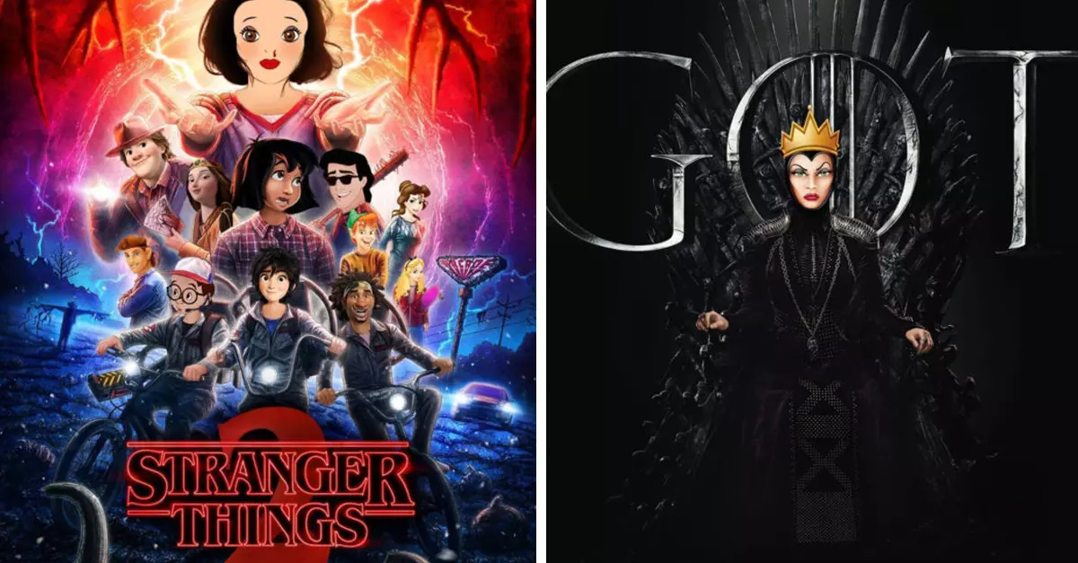 El artista Gregory Masouras traspasó el límite entre la animación y la realidad para que las princesas dejaran atrás sus cuentos de hadas y se unieran al reparto de producciones taquilleras como Ha nacido una estrella y Stranger Things.