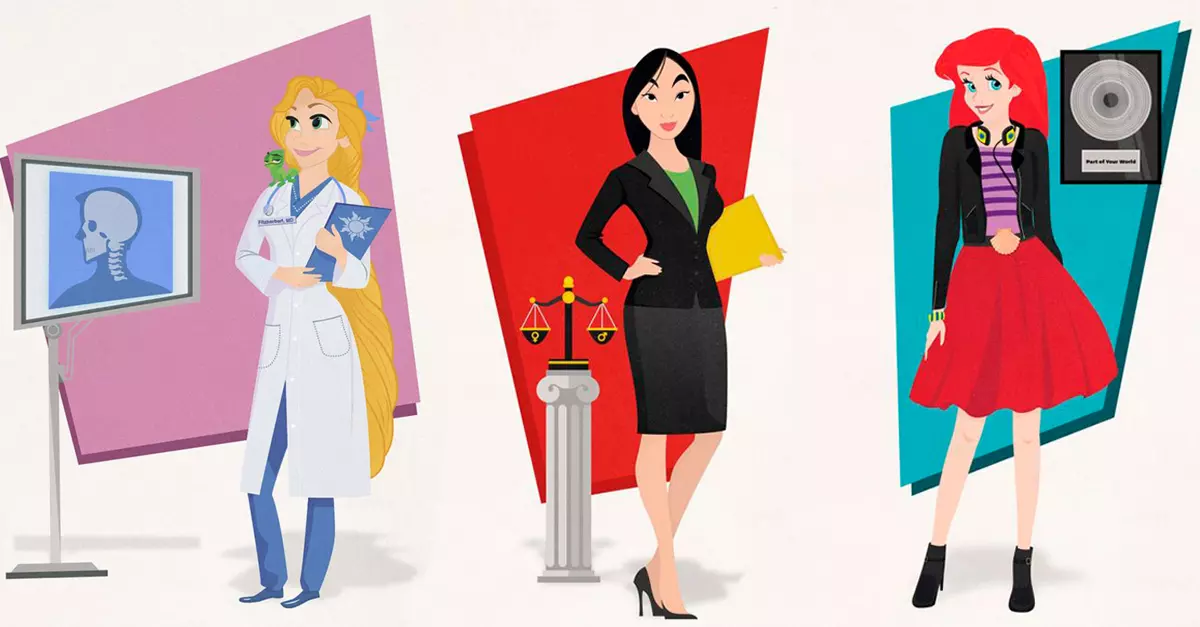 Como la mayoría de las personas de mi edad, crecí viendo películas de Disney; a medida que fui creciendo comencé a apreciar el trabajo que requiere la animación. He visto muchas veces que las princesas son imaginadas de diferentes maneras, pero ninguna mostrándolas como mujeres con carreras exitosas. Para tantas personas, las princesas se han convertido en una inspiración, por eso quise darles una carrera, para así inspirar a otros a que puedan encontrar la profesión que aman y que los ayude a marcar la diferencia. El trabajo me tomó dos meses y medio, pero valió la pena.