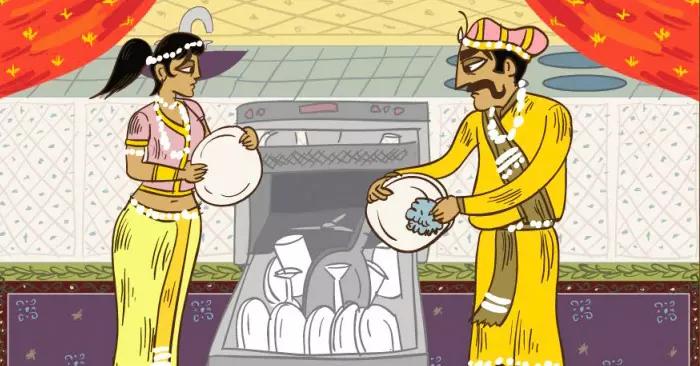Ideal para las parejas que les gusta adoptar un rol en la relación. El hombre se decide a lavar los platos sucios, luego la mujer le ayuda sutilmente, para hacerlo ella misma, porque de otro modo su marido hará todo incorrectamente.