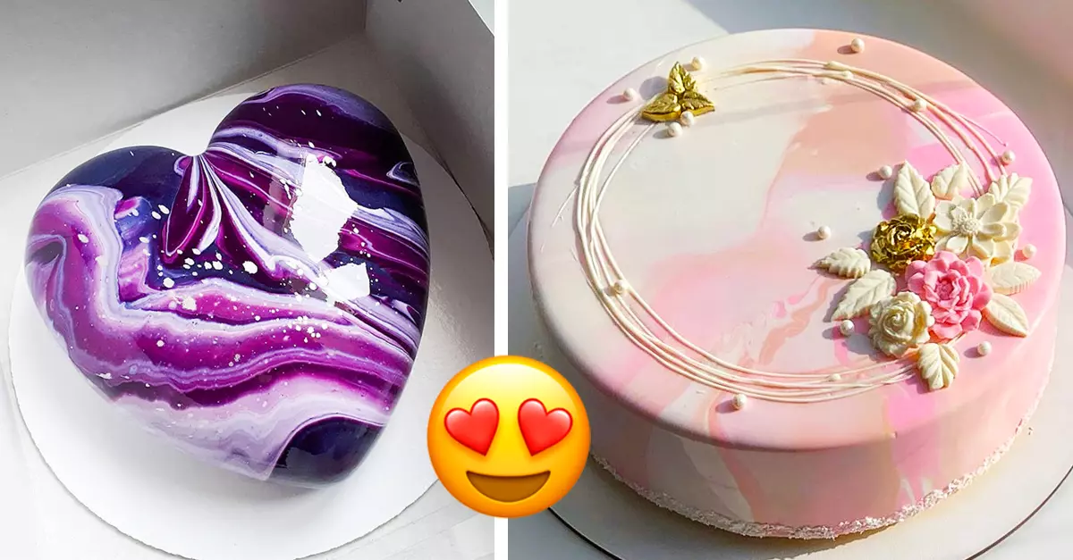 Si te consideras una chica elegante, con preferencias minimalistas y sobrias, entonces los biscochos de glaseado espejo serán tu mejor elección. Sus contrastes de colores y brillo se quedarán grabados en la pupila de todos los presentes, quienes no se resistirán a pedir más de una rebanada.