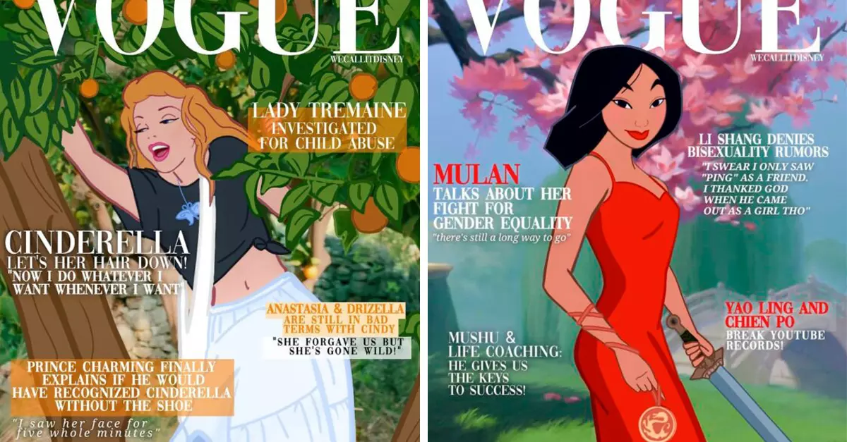 La ilustradora Martha’s Page se dio a la tarea de sacar a las princesas Disney de sus hermosos castillos para convertirlas en modelos protagonistas de la portada de Vogue, la revista de moda más icónica del mundo entero.