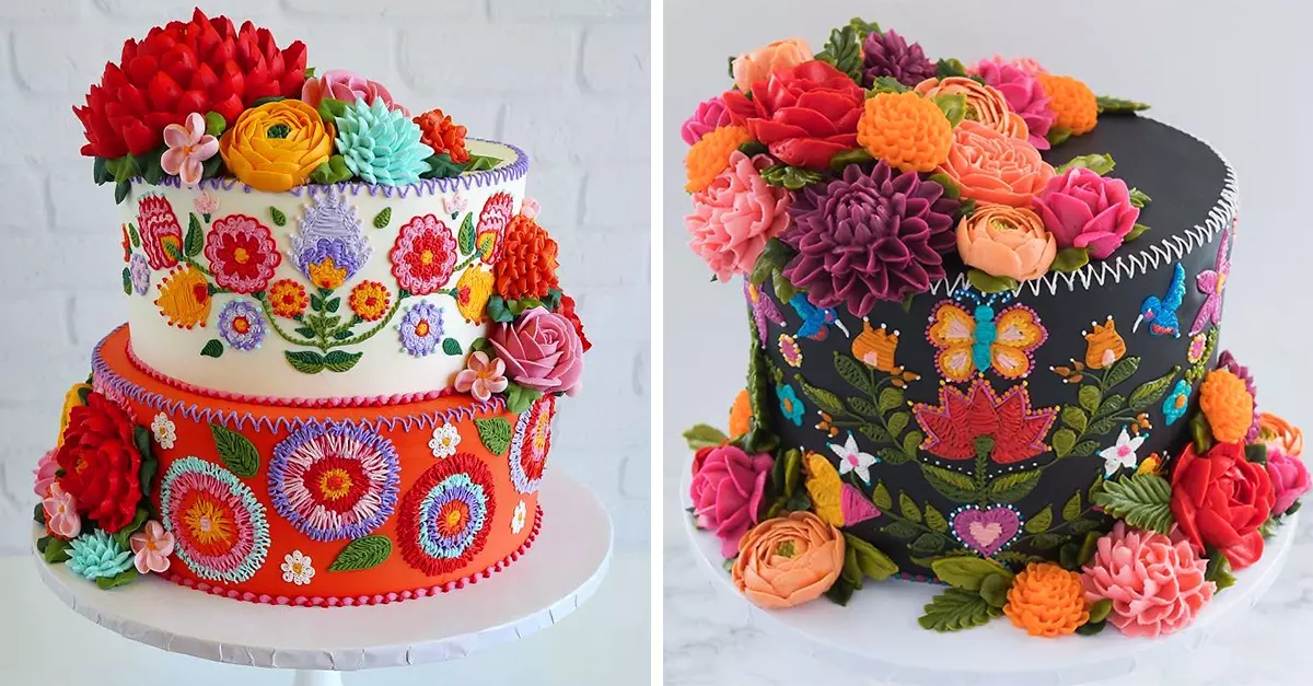 Pero Vigil no limita su talento a la entrega de pasteles caseros. Por ello creó una colorida colección de bizcochos llamada Tapestry Cakes, Flour Child en la que fusiona lo mejor de la repostería y el bordado mexicano, al crear puntadas de betún para decorar los pasteles con flores, mariposas y colibríes.