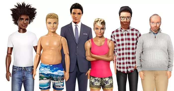 La versión que el sitio presento de Ken incluye un muñeco ‘Dad Bod’ (el equivalente a la chica ‘Curvy’), un Ken con barba, uno calvo, uno de color y hasta un asiático.