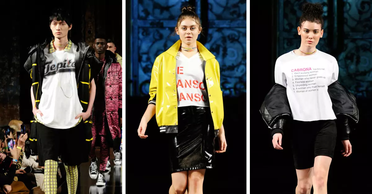Una de las prendas que más llamó la atención fue la blusa dedicada a “las siete cabronas de Tepito”, pues describe la fuerza femenina según el Cabronario (diccionario) mexicano: