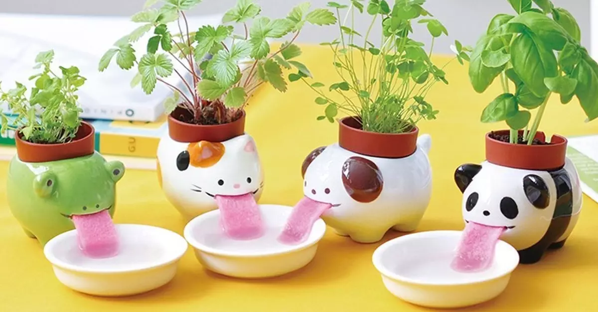 Peropon es una marca japonesa que fabrica las macetas más kawaii que verás en esta y otras vidas. Este tierno diseño imita a animales bebiendo agua; sus lenguas de fieltro están conectadas al macetero y conducirán el agua al interior cuando tu planta tenga sed.