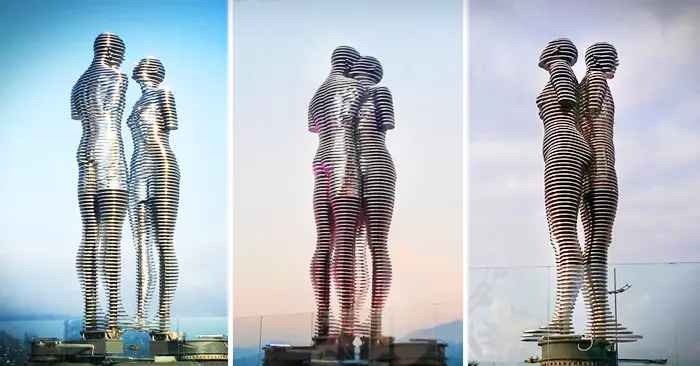 Se dice que la escultura refleja la historia de amor entre Ali y Nino y lo hace de la manera más sorprendente, a través del movimiento.