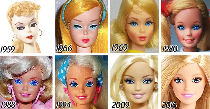 Desde su lanzamiento en 1959, Barbie ha cambiado según han cambiado también los ideales que la sociedad establece sobre la mujer. La usuaria de Tumblr, Tenaflyvuper, realizó una recopilación de imágenes del rostro de la icónica muñeca que ha aparecido cada año desde 1959, y ha creado un collage para apreciar su evolución.