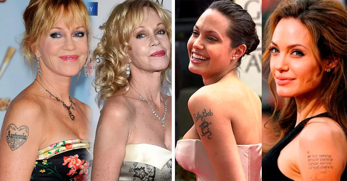Angelina se tatuó el nombre de su entonces marido Billy Bob Thornton y cuando terminaron trató de borrarlo con láser, pero como no desapareció del todo tuvo que cubrirlo con otro diseño.