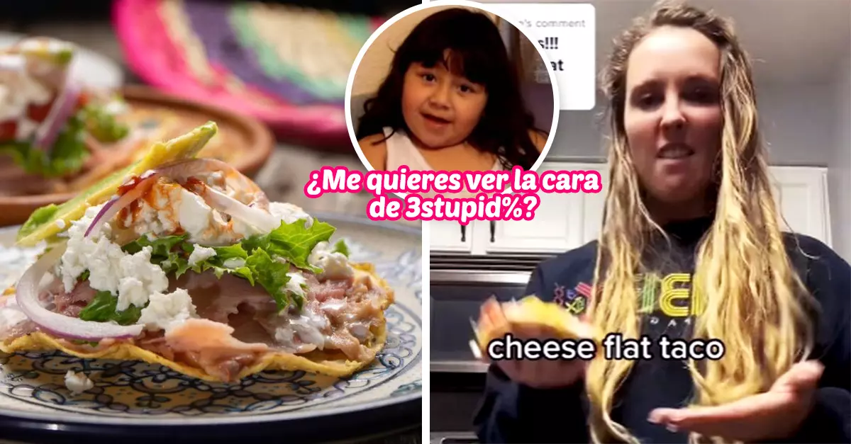 ¡Sí! En esta ocasión una chica se dio a la tarea de mostrarnos una “novedosa” forma de comer tacos, con la peculiaridad de que estos eran completamente planos, a lo que, obviamente, los usuarios reaccionaron aclarándole que se les llaman “tostadas”.