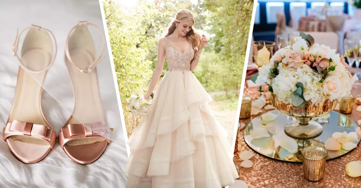 Y haciendo a un lado los tonos clásicos, ¿que te parecería usar algo como el rose gold? Sí, ese color que hemos visto en las últimas temporadas en tintes, uñas y otros objetos de los que, probablemente, tenemos unos cuantos. Si eres una chica que se ha enamorado del rosa metálico y tu boda está próxima, aquí te damos 15 ideas para que puedas darle ese toque de color metálico que buscas.