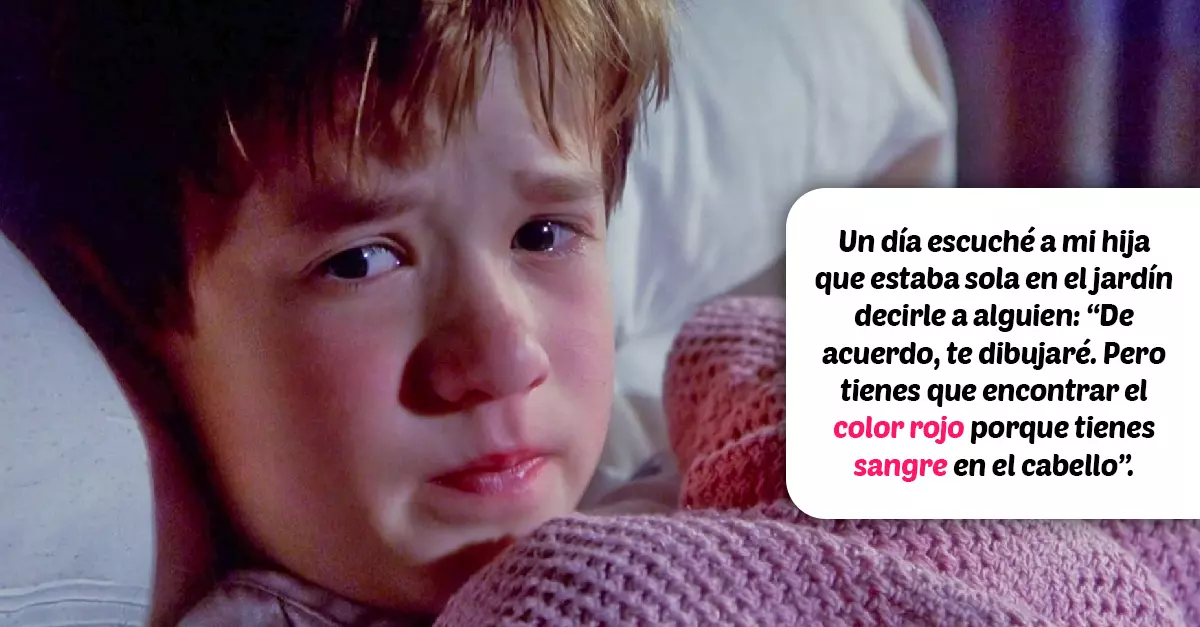 Un día escuché a mi hija -que estaba sola en el jardín- decirle a alguien: ‘De acuerdo, te dibujaré. Pero tienes que encontrar el color rojo porque tienes sangre en el cabello’.