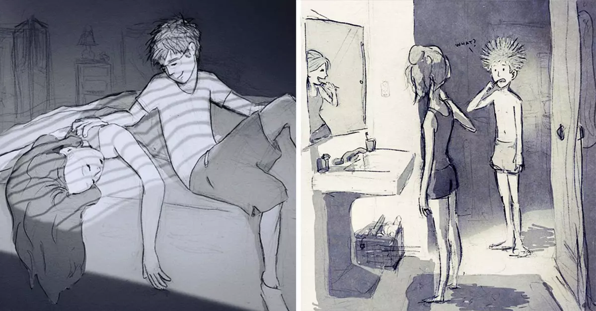Ya sea que estuvieran acurrucados en un sillón, o esperando ver el resultado de una prueba de embarazo, el ilustrador captó cada momento con un detalle y calidez impresionantes. Disfruta estas conmovedoras imágenes, que te harán recordar la belleza que hay en que cada instante sea único e irrepetible.