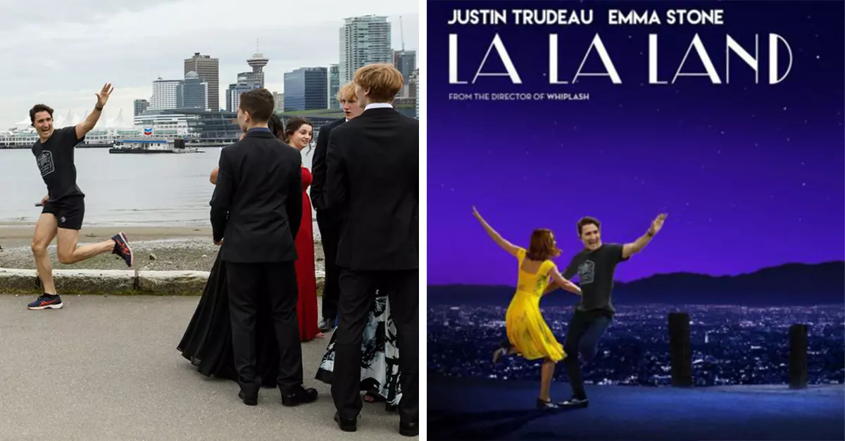 Simplemente es una de las personas más cool en el planeta y lo demostró mientras trotaba en el Stanley Park Seawall, en Vancouver, cuando se atravesó en una graduación. Una docena de estudiantes realizaba una sesión de fotografías y se sorprendieron cuando Trudeau pasó corriendo a su lado como si nada. El fotógrafo oficial, Adam Scotti, inmortalizó el momento con una increíble imagen que ha quedado para la posteridad, pero también nos regaló el material para una épica photoshop battle.