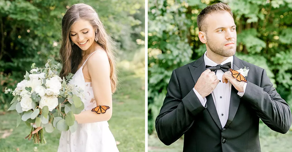 Antes de compartir las fotos, escribió en su cuenta de Facebook un hermoso mensaje, pues ella cree que la mariposa que llegó a la sesión se trata de la abuela de la novia, quien lamentablemente falleció poco antes del compromiso de la pareja y que, casualmente, amaba a las mariposas monarca.