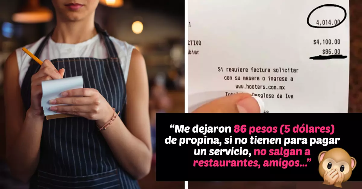 En México es usual que a las meseras se les deje una propina por su servicio. Sin embargo, no siempre es la cantidad apropiada y así lo dejó ver una chica, a quien le entregaron cerca de cinco dólares como propina, por lo que no estuvo conforme y exhibió a sus comensales en redes sociales, desatando una ola de comentarios.