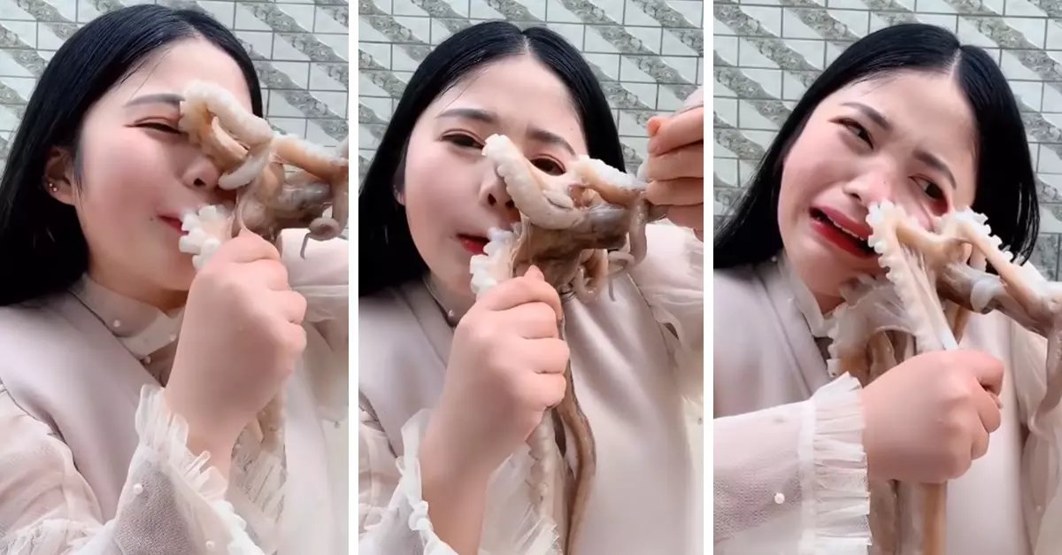 Seven tiene algunos años dedicándose a crear videos en los que se le puede observar comiendo mariscos y luego dando una reseña sobre el platillo, pero el último se volvió viral por una razón distinta. Esta vez la chica compartió una transmisión para que sus seguidores pudieran apreciar cómo intenta comerse a un pulpo vivo, un “platillo” considerado como un manjar en la cultura china. Por desgracia para ella, y fortuna para el animal, este se defendió y la atacó.