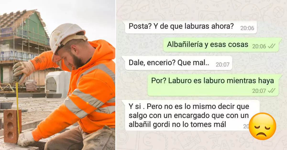 En esta corta pero dolorosa conversación, él le dijo que es albañil y ella lo rechazó de manera tajante. Los hechos ocurrieron cuando recién se conocían y al momento de preguntarle al hombre por su trabajo, ella no estuvo conforme.