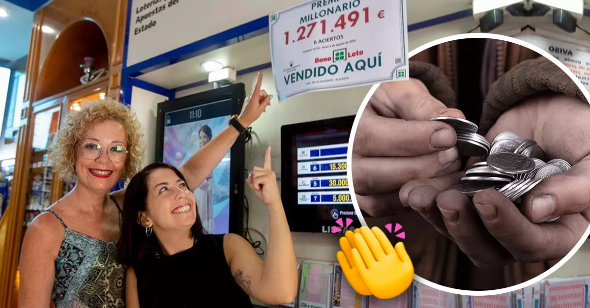 Cuando se supo que el primer premio de la Bonoloto se había vendido en el lugar, los vecinos estaban ansiosos por saber quién había sido el afortunado, todos excepto la propia ganadora, quien, indiferente a las noticias, siguió pidiendo limosna como hacía habitualmente.