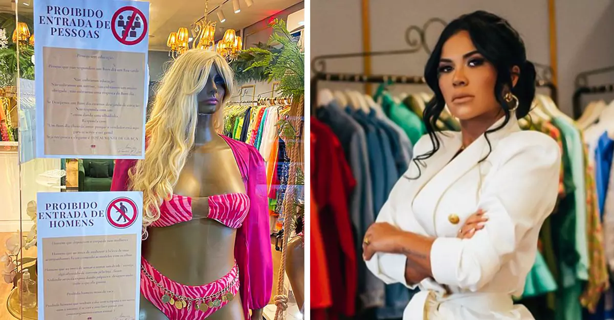 Andrea Costa es dueña de una tienda de lencería conocida como Mr. Luxos, en Brasil. La empresaria que también es modelo causó gran revuelo cuando decidió colocar un cartel en el escaparate de su negocio que prohíbe el acceso a hombres.