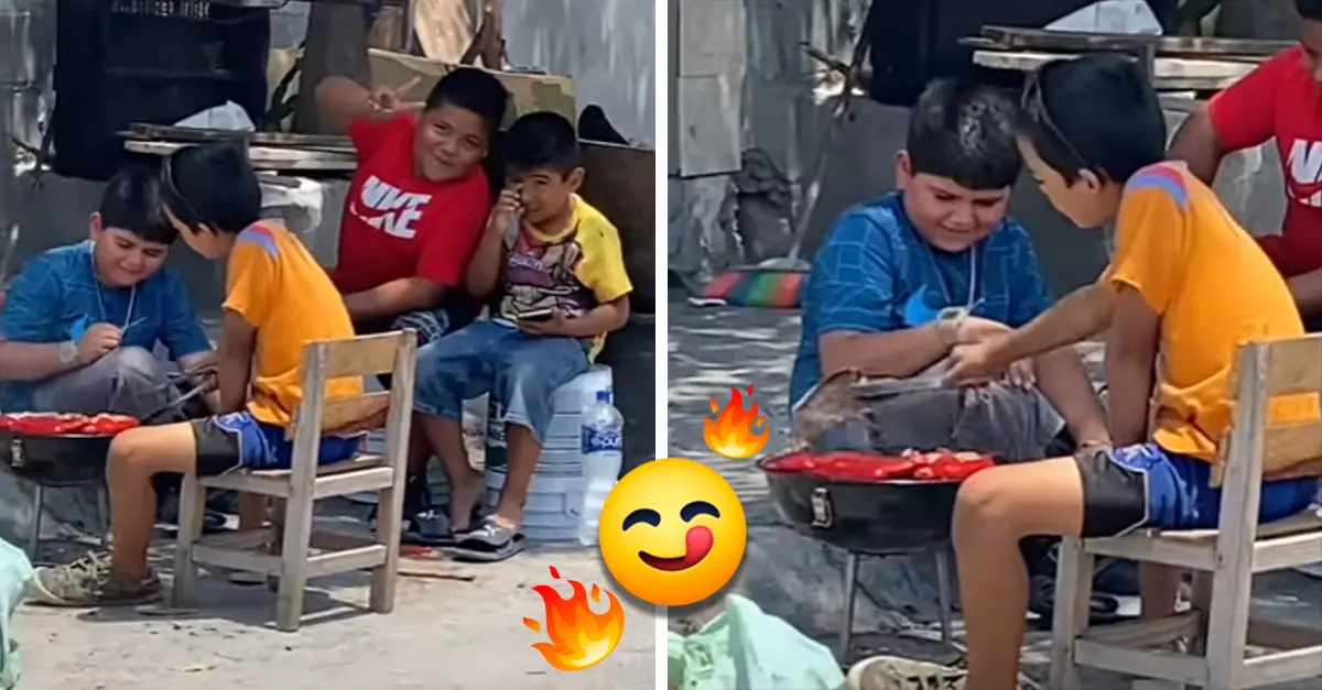 El encargado de regalarnos este video fue Carlos M Pastrana, quien a través de su perfil @carlosmontejano04 en TikTok, compartió una grabación de apenas 13 segundos de duración en la que se puede ver a cuatro niños sentados a la orilla de una banqueta preparando carne en un mini asador afuera de una casa en la ciudad de Monterrey.