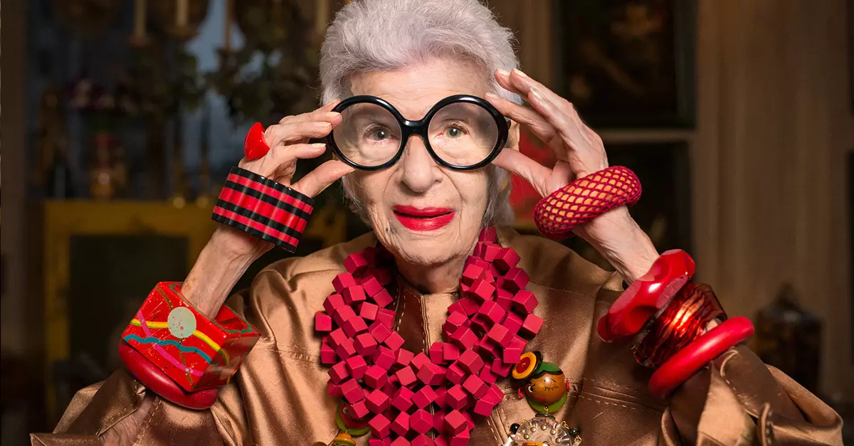 Iris Apfel es reconocida por romper todo estándar en la moda