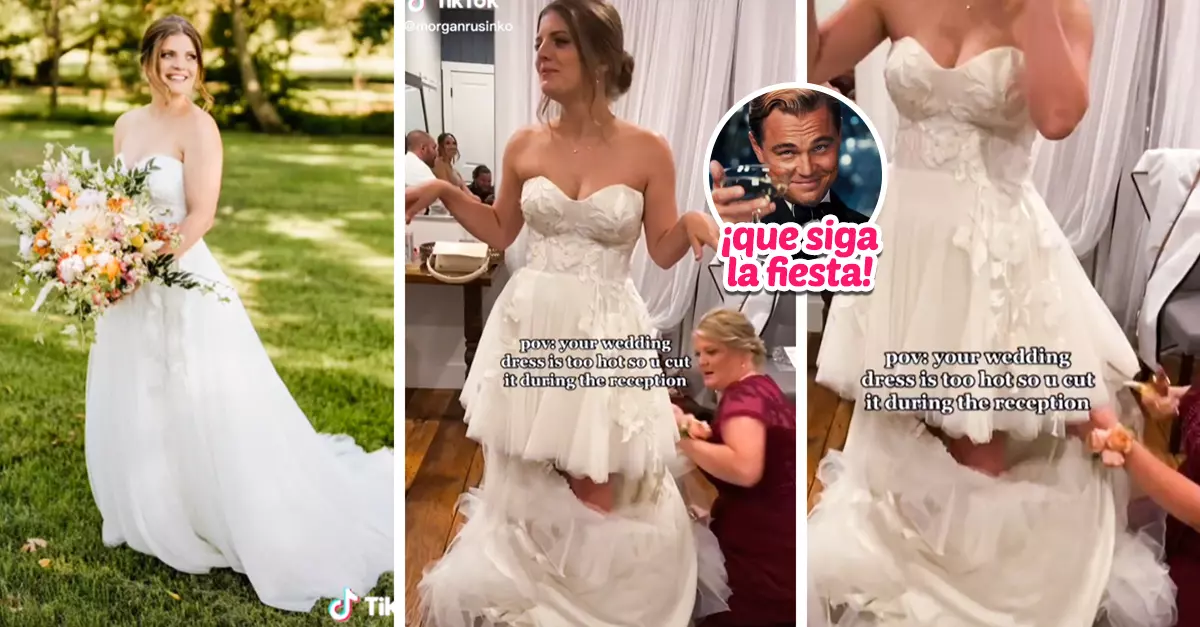 Es por eso que, por más preparado que el evento esté, ante cualquier variación de la temperatura nunca faltan los imprevistos, por lo que hay que saber improvisar para seguir adelante con la celebración. Algo que una novia tuvo muy claro, pues al sentirse superacalorada con su vestido, optó por cortarlo en plena recepción, sorprendiendo con su inusual acción a los cibernautas.