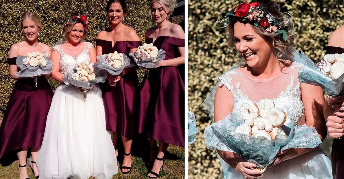 Esta novia decidió cambiar su típico ramo por uno hecho de donas