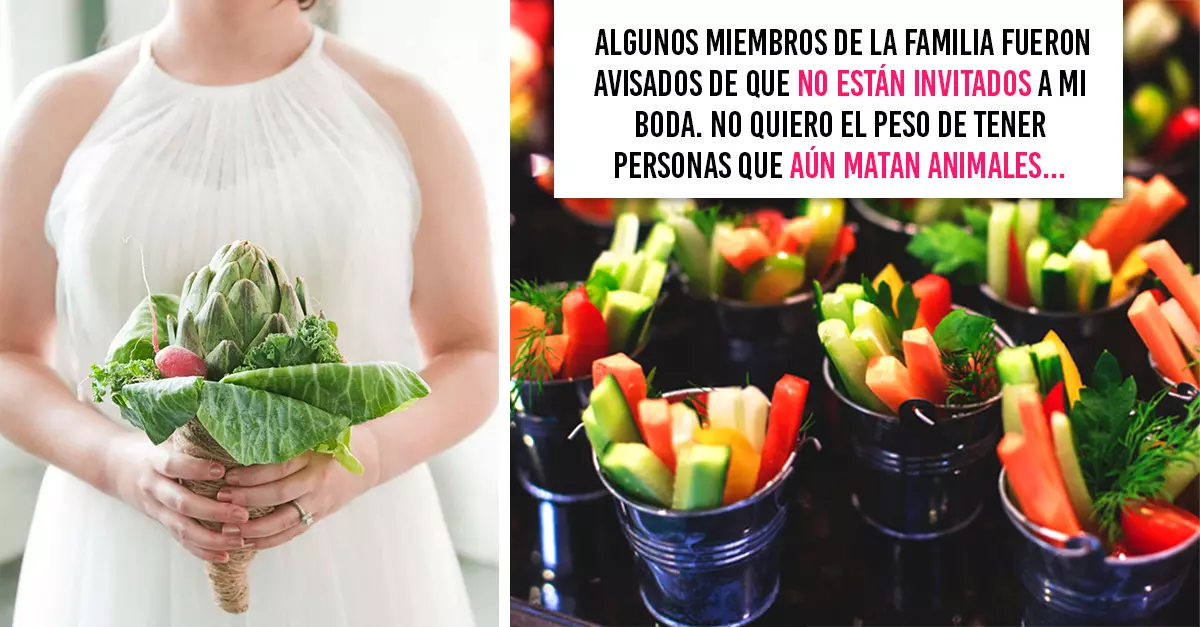 Aparentemente quería que fuera un evento familiar, pero al final pensó mejor todo y decidió no invitarlos, incluida a su madre, porque quería que fuera una boda completamente vegana. El usuario compartió los detalles del porqué de la novia: