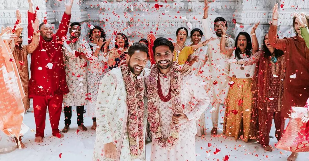 Después de años de papeleo, celebraron su unión civil en Nueva York a principios de 2019, pero las tradiciones de su cultura son muy importantes para ellos por eso lo hicieron con una impresionante boda tradicional en un templo de Nueva Jersey. La pareja usó la clásica kurta, una camisa suelta que cae hasta los muslos, diseñada especialmente para la ceremonia.