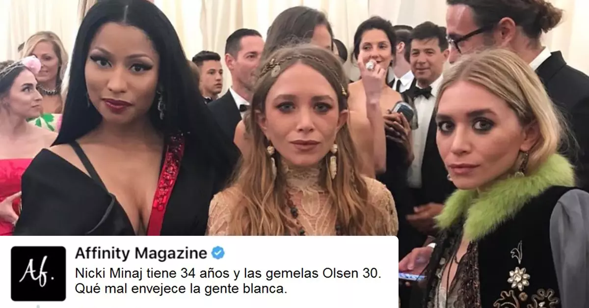 “Nicki Minaj tiene 34 años y las gemelas Olsen 3o. Qué mal envejece la gente blanca”.