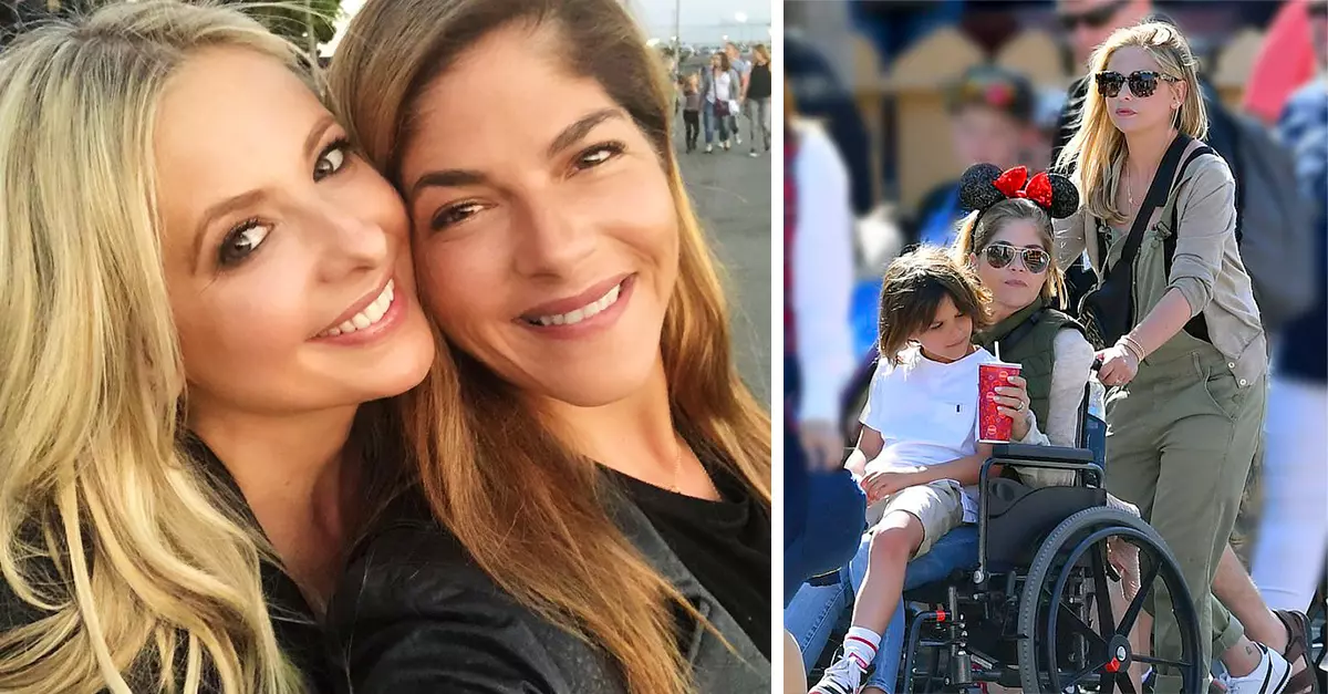 Una serie de fotografías tomadas en el parque temático fueron un ejemplo más del afecto de estas grandes amigas, donde Sarah ayudó a Selma con su silla de ruedas, pues la esclerosis múltiple ha limitado su movimiento.
